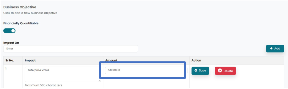 In this section, all those factors can be added on which financially quantifiable objective can impact.