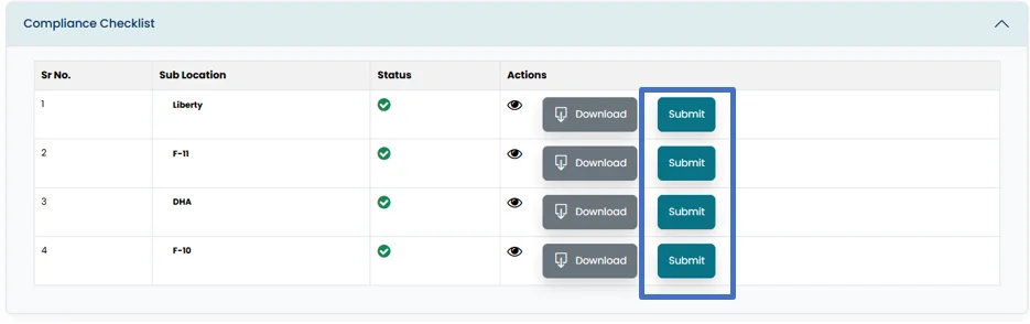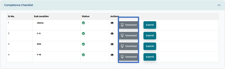 • Compliance checklist can also be downloaded in excel file by clicking on download button.