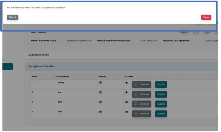 Please note that only the Internal Audit Head’s approval is required to finalize the compliance checklist.