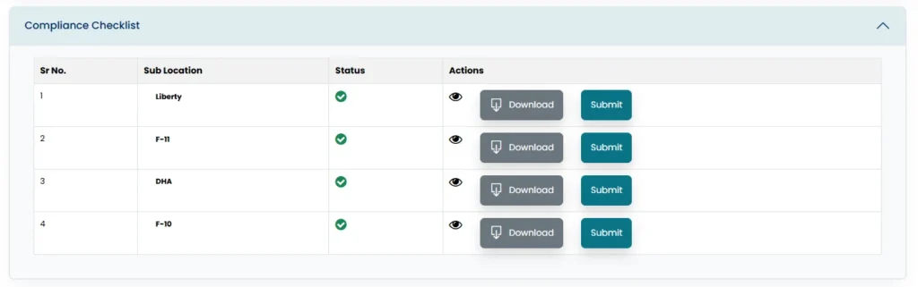 • By clicking on the view icon, user can view the compliance checklist related to the job including