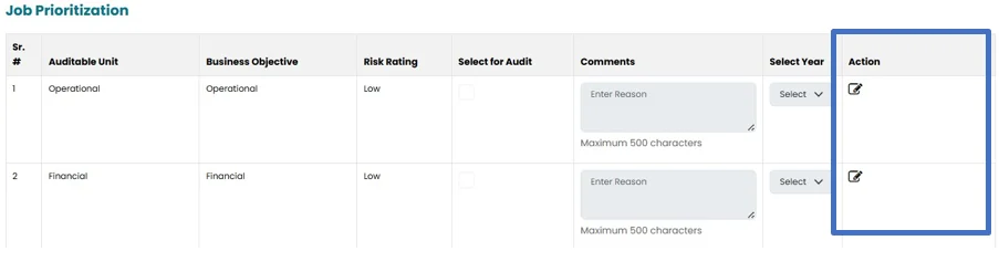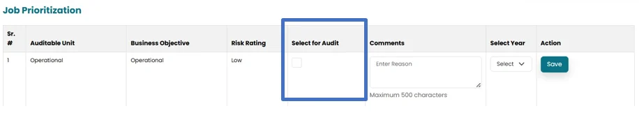 - Click on “Job Prioritization” under audit planning and scheduling on the left bar.