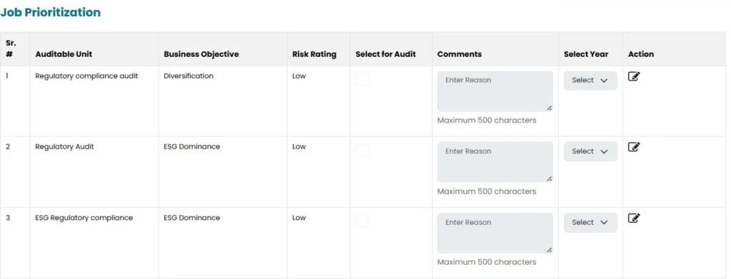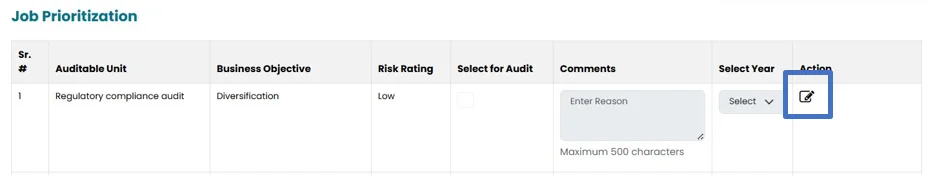 • Click on “Job Prioritization” under audit planning and scheduling on the left bar.