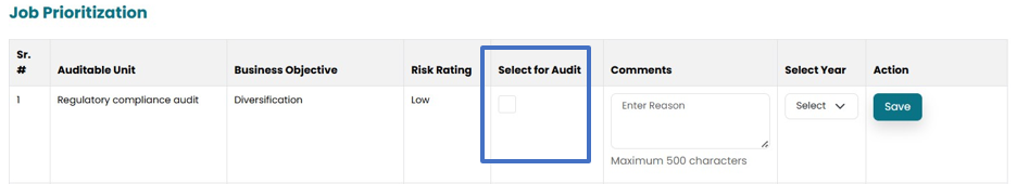 • User can select the job for Audit by clicking on the check box mentioned in the “select for Audit”.