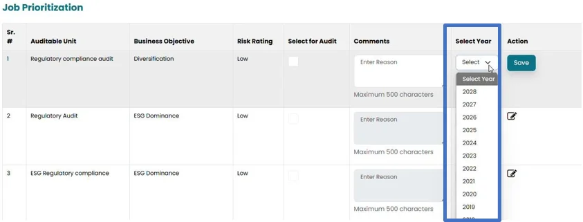 Note: If you have selected the different year, other than the Current year, the Job will be visible in the Job Prioritization section in the year selected by the user.