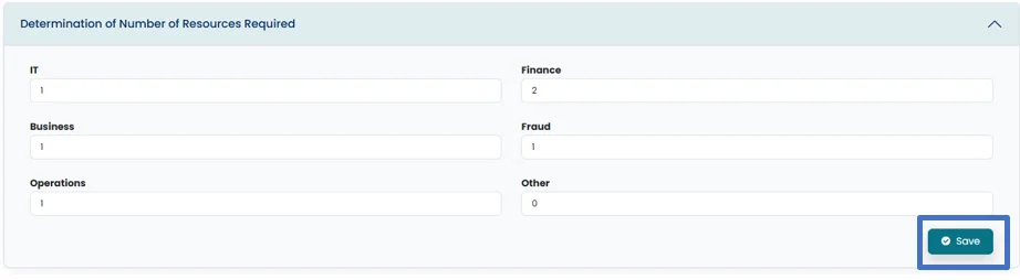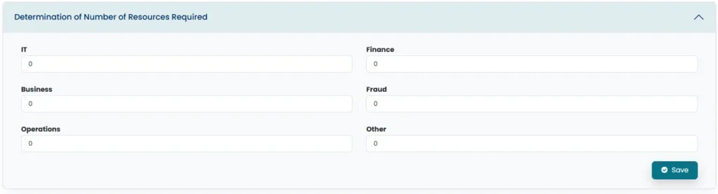 • Determine the number of resources needed to execute the job based on the user’s/Internal Audit team member skills by clicking on “Determination of Number of Resources Required”, select from the following categories: