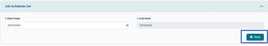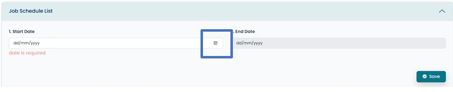 • Drop down “Job schedule List”, click on calendar icon to select the “start date”. “End date” will be calculated by system based on the number of selected weeks in “time and date allocation” section.