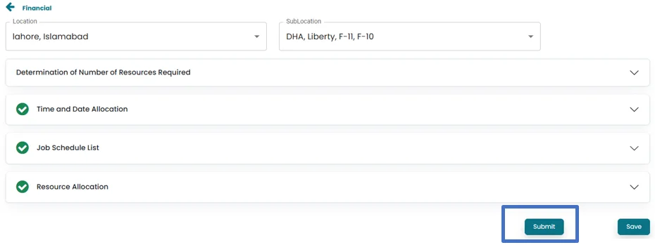 • In the Resources Allocation, based on the skills and number of resources required, System will provide you the list of employees. User can select the relevant person for the job.