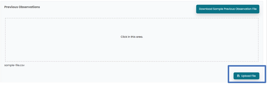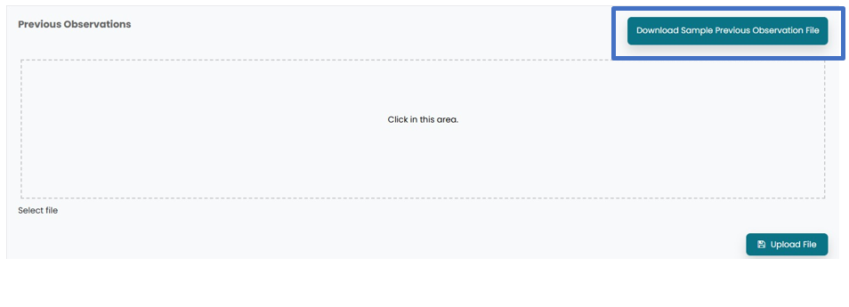 • Click on “Download sample file Observation File” in order the download the excel file.