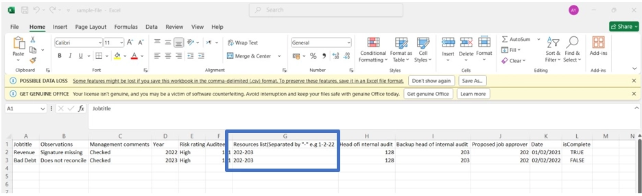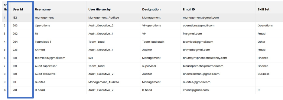 • Populate area provided for resources with their User Id mentioned in the table provided in previous observation section.