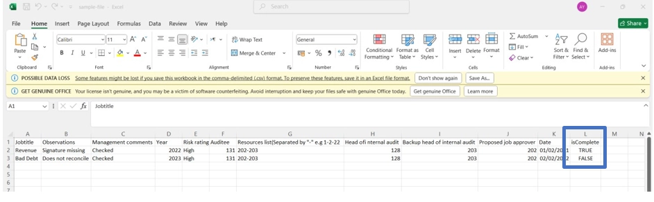 • In the Is Complete cell, write TRUE for the Observation that is completed and FALSE for the Observation that is Incomplete.