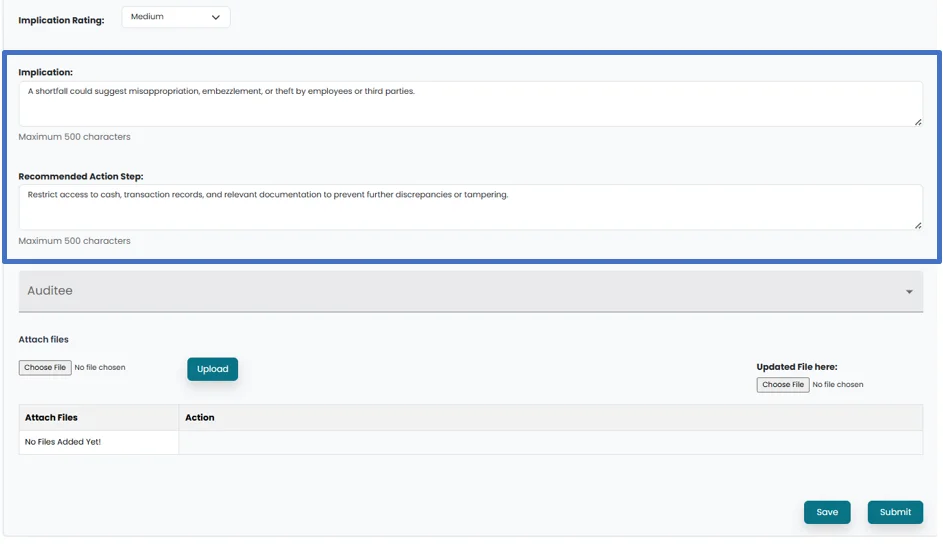 • Populate Implication of the observation and Recommended Action Steps.