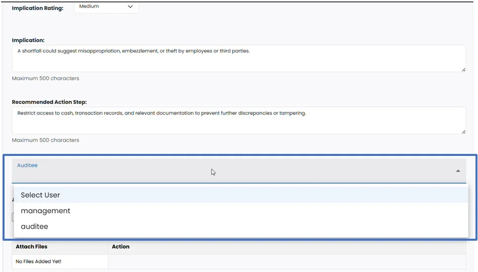 • Select the Auditee to which observation need to be sent from the drop-down list.