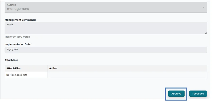 • User can approve management response by clicking on Approve button.