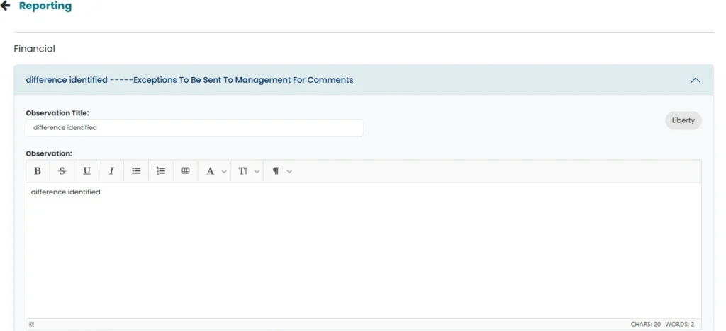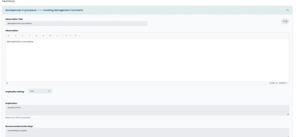 • After approval from the Internal audit head, observation is sent to selected management account for comment and observation status will be updated to “Awaiting Management Comment”.